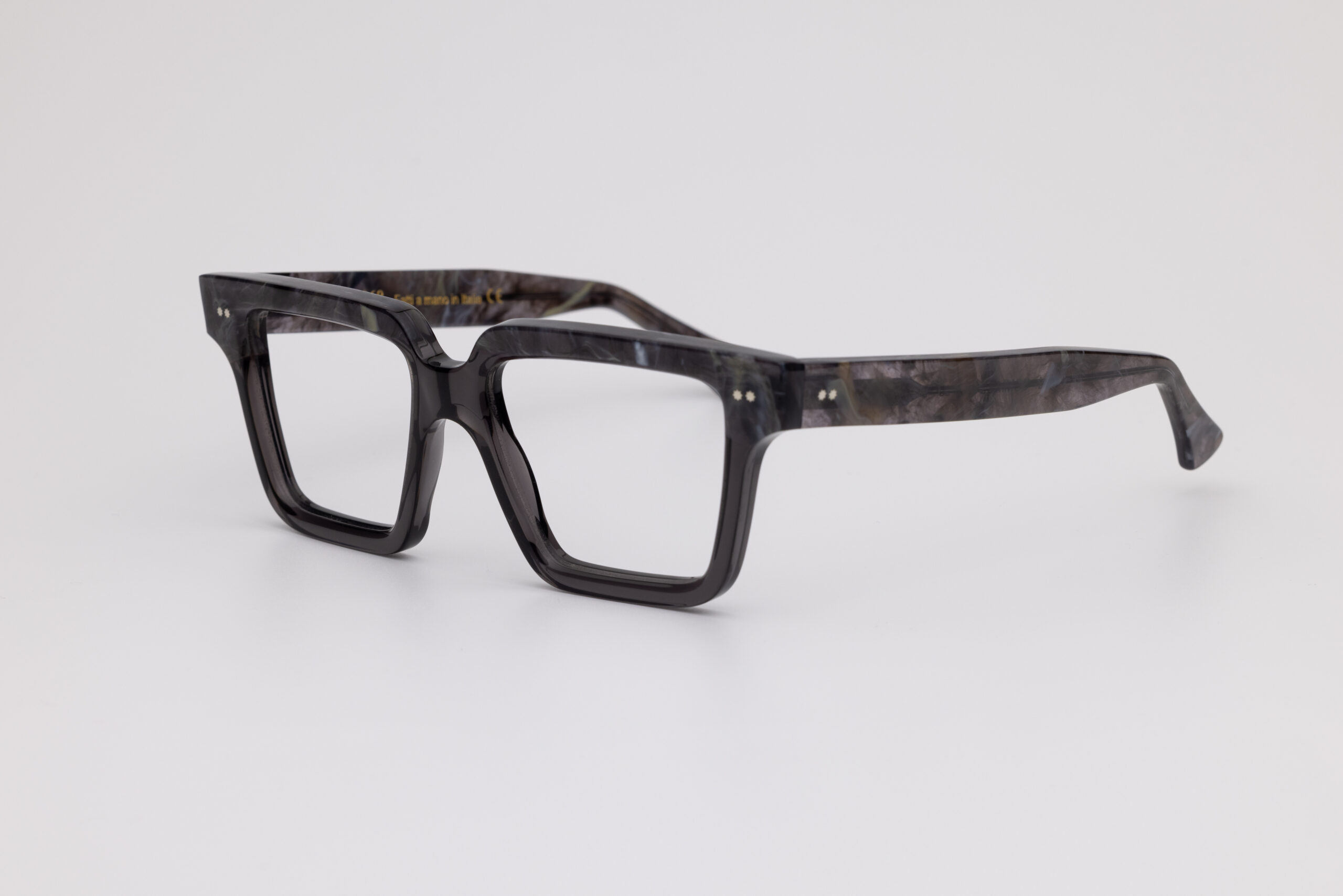 Occhiale con 8 perni a stella e cerniere a cinque snodi ribattute