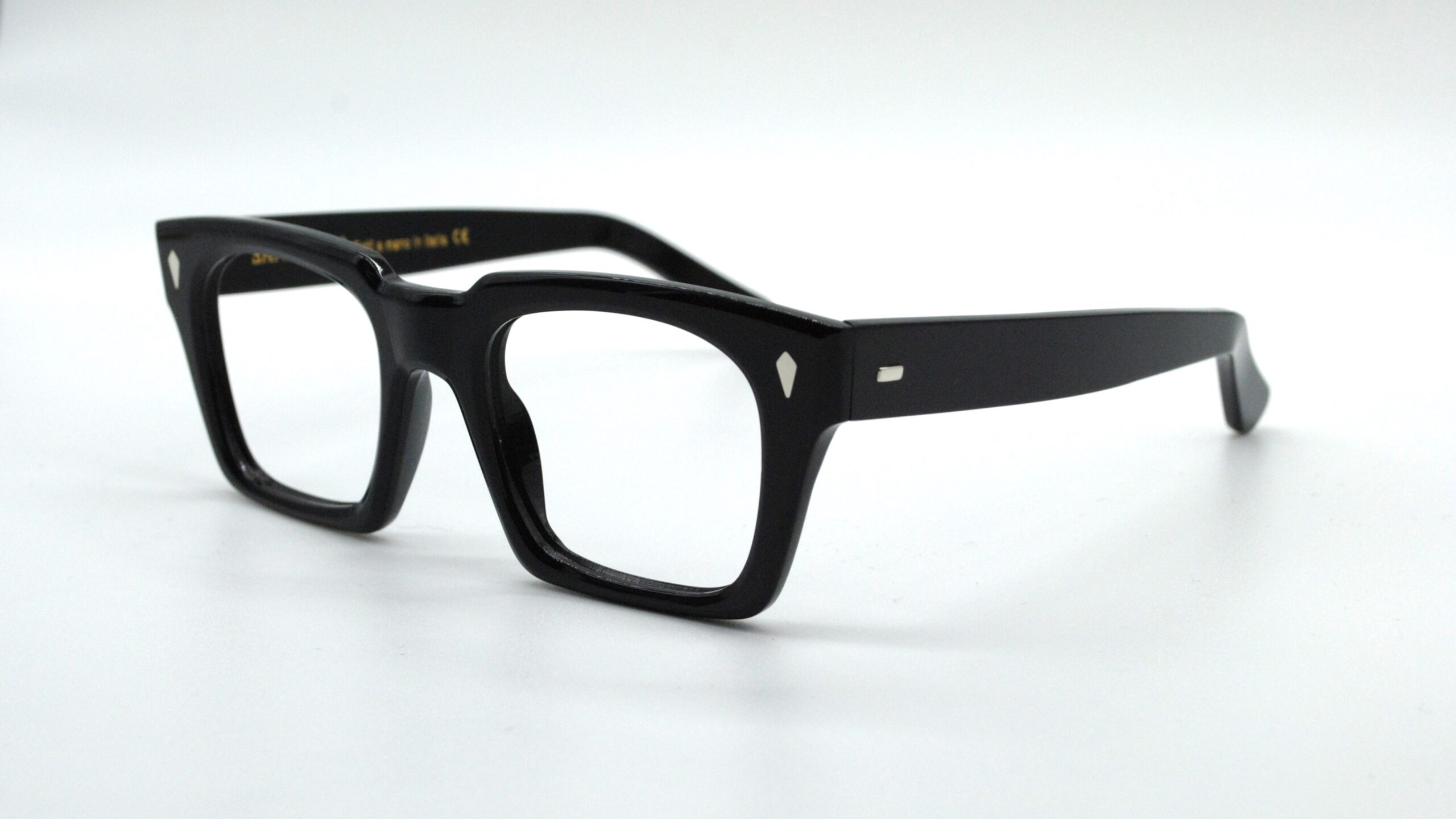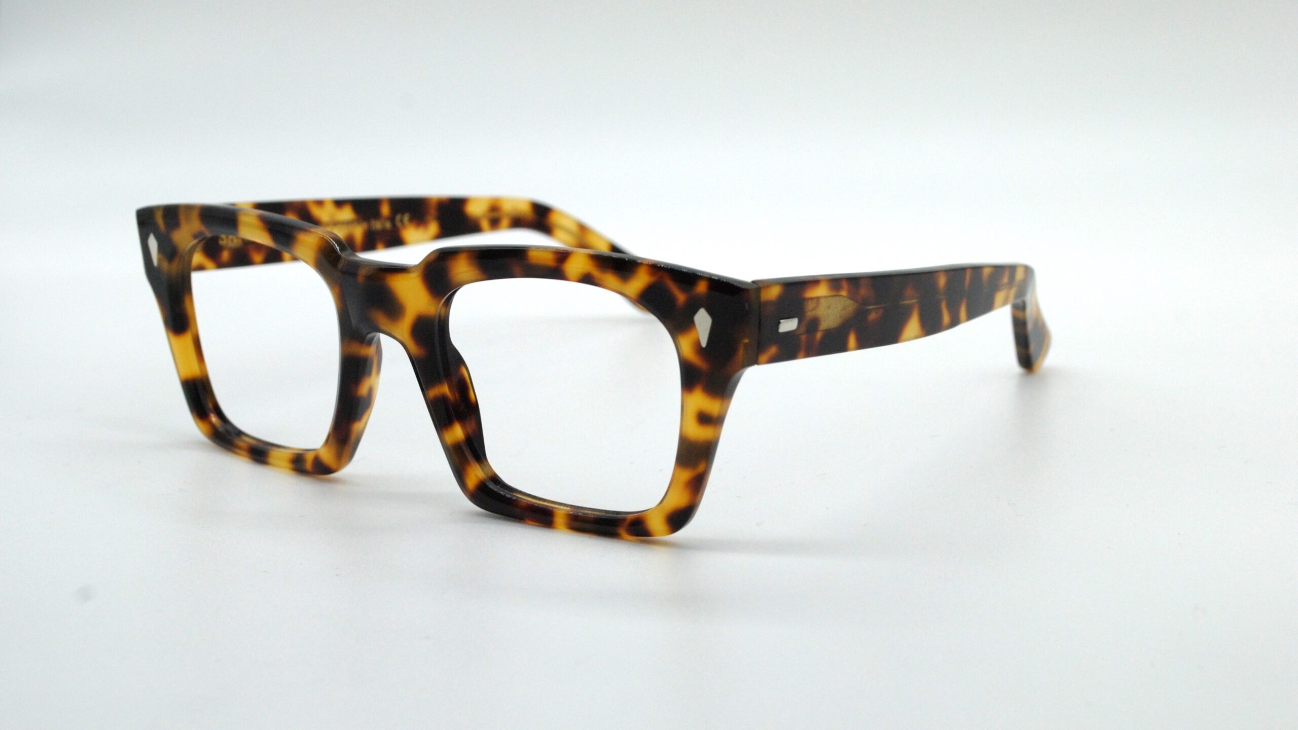 Occhiale con 2 perni a rombo e 2 perni rettangolari cerniere a cinque snodi ribattute